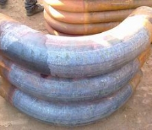熱煨彎管也叫做中頻彎管,其生產(chǎn)工藝是直管下料厚通過(guò)彎管推制機(jī)在鋼管待彎部分套上感應(yīng)圈,用機(jī)械轉(zhuǎn)臂卡住管頭,在感應(yīng)圈中通入中頻電流加熱鋼管,當(dāng)鋼管溫度升高到塑性狀態(tài)時(shí), 在鋼管后端用機(jī)械推力推進(jìn),進(jìn)行彎制,彎制出的鋼管部分用冷卻劑冷卻, 這樣邊加熱、邊推進(jìn)、邊彎制、邊冷卻, 不斷將彎管彎制出來(lái)。